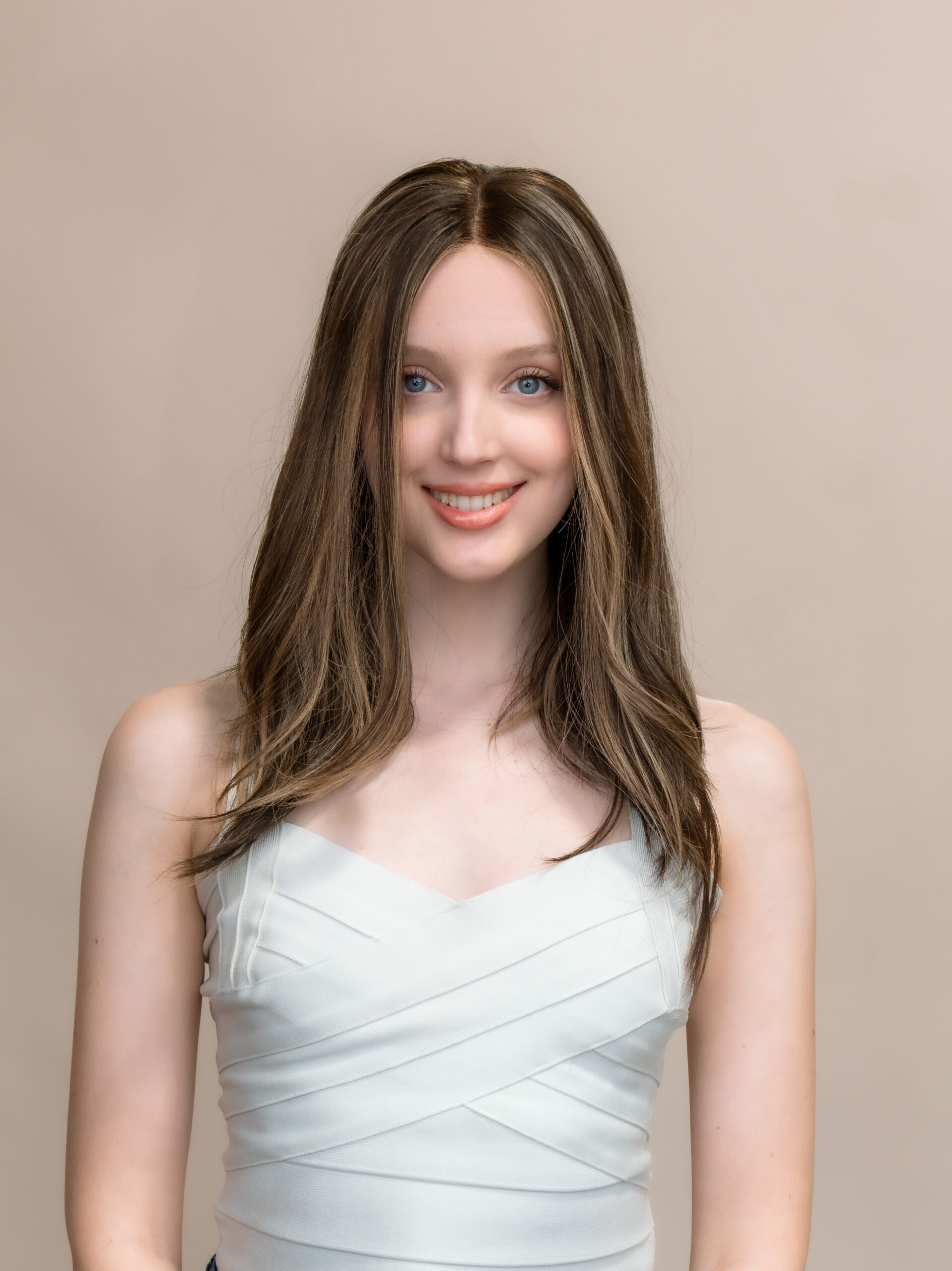 A rich chocolate brunette base sets the foundation for depth and warmth, while chunky blonde highlights create bold contrast and dimension. The high-impact blonde pieces add brightness and frame the face, enhancing movement and texture. This striking combination blends warmth with definition, making it an ideal choice for those who love a statement brunette look with vibrant, dimensional highlights.
