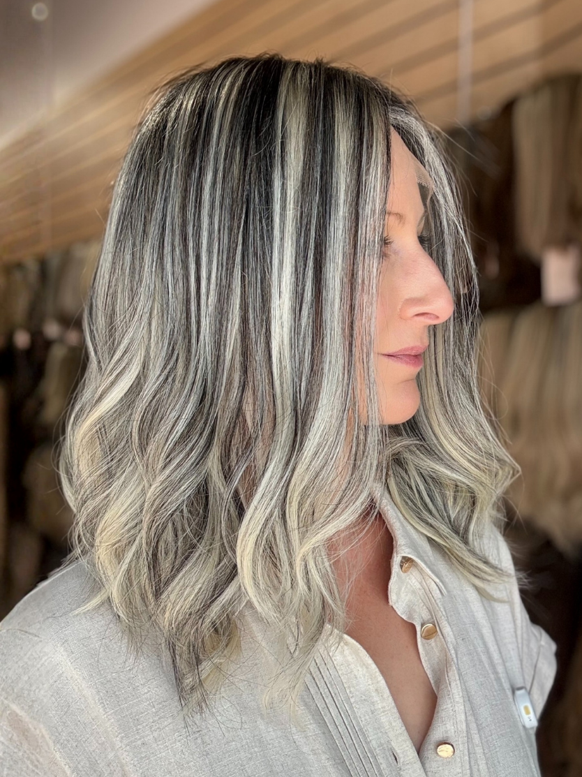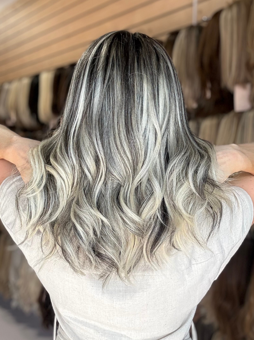 Daring, bold, and beautifully modern — Smoke Blonde is a striking blend of icy platinum and cool ash tones, melting from a soft charcoal root. The multi-dimensional mix of cool blonde and dark lowlights creates a high-contrast effect that turns heads.