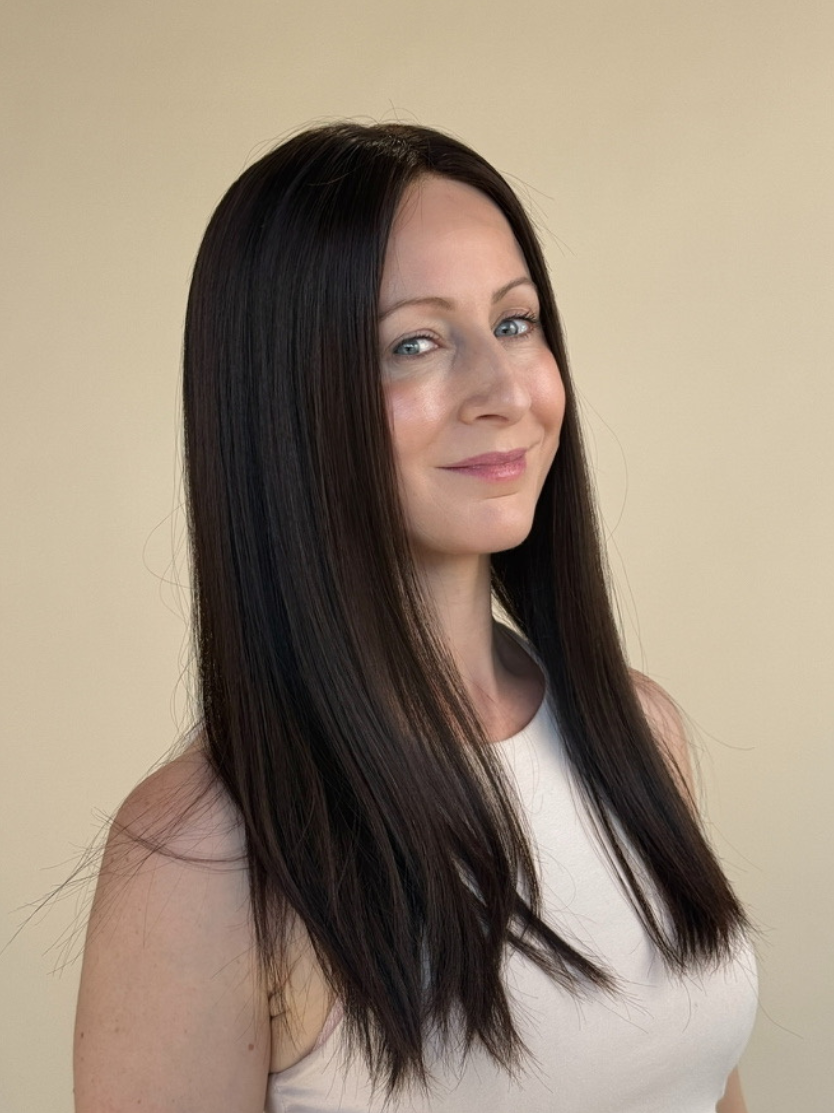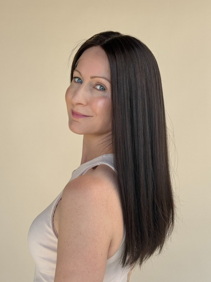 GoldyLost Hair wigs are comfortable, natural caps that cover all of your own hair. They allow you to wear any hair colour or length you desire. This lace top wig made from high quality remy human hair, is lightweight, breathable and incredibly natural looking. The transparent lace blends into your skin, and the hair looks like it is growing from your own head. The ear to ear lace with small knots gives an incredibly natural hair line and the lace top is 100% hand tied allowing you to comfortably part the hair anywhere on the top (yes, you can do a side part!). The fully hand tied cap is ultra lightweight and breathable. An adjustable band for the perfect fit. A fine silk material under the lace gives the illusion of a natural scalp and 2 pressure sensitive clips on the ear tabs and a comb at the nape for extra security (easily removed if preferred). Density: Medium density (130%). Length measured from crown to tip with layers. Made from beautiful human hair, it will air dry straight and can be styled any way you like with hot tools. Professionally cut and styled as per the photo, this beautiful wig is ready to wear straight out of the box!