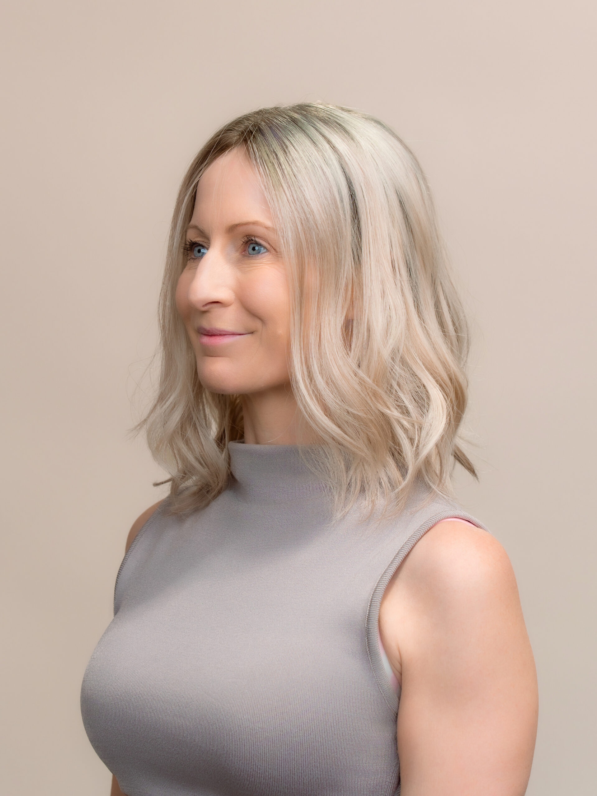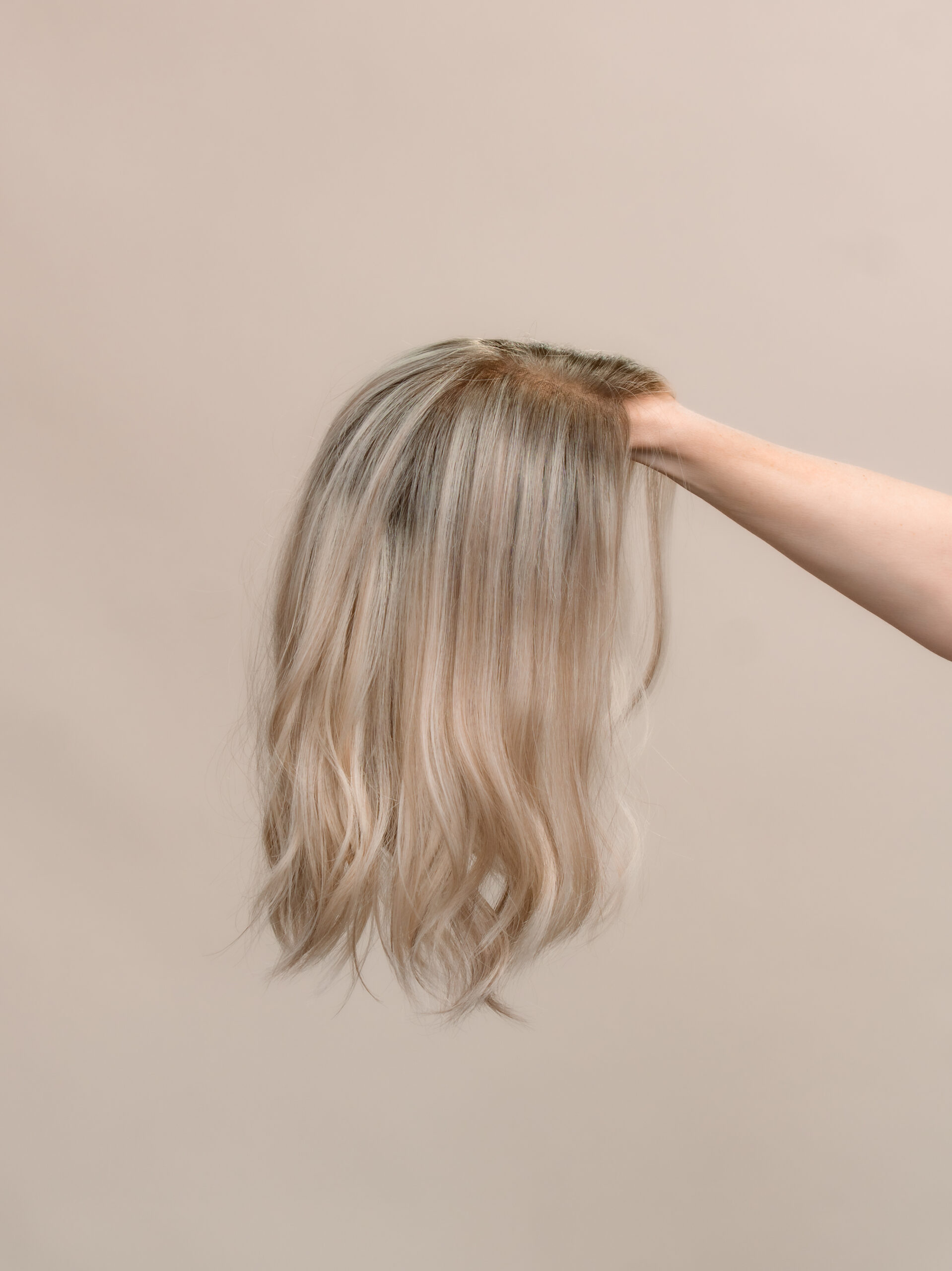A soft blend of cool-toned roots and creamy beige ends with natural lowlights for depth and brightness. The lace topper design sits flat, blends seamlessly, and provides lightweight, natural coverage. Made from premium human hair, it can be styled with hot tools or worn straight — beautifully natural and ready to wear.