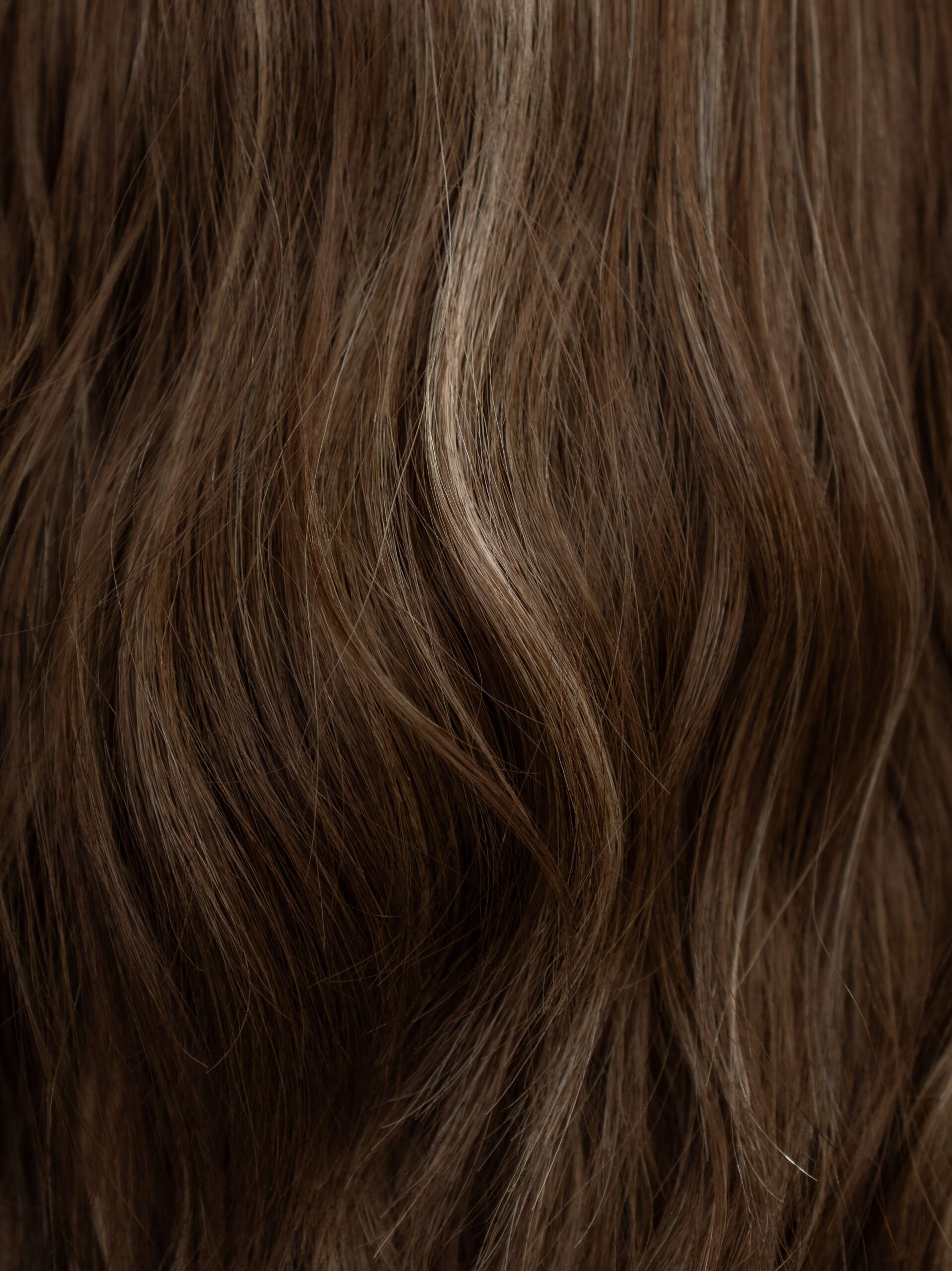 A soft, smoky light brunette base creates a cool, muted foundation, offering a sophisticated and natural look. Delicate babylights are finely woven throughout, adding subtle brightness and dimension without overpowering the depth of the brunette. The result is a seamlessly blended, refined colour with a soft glow, perfect for those who prefer a low-maintenance, natural-looking brunette with a touch of brightness.