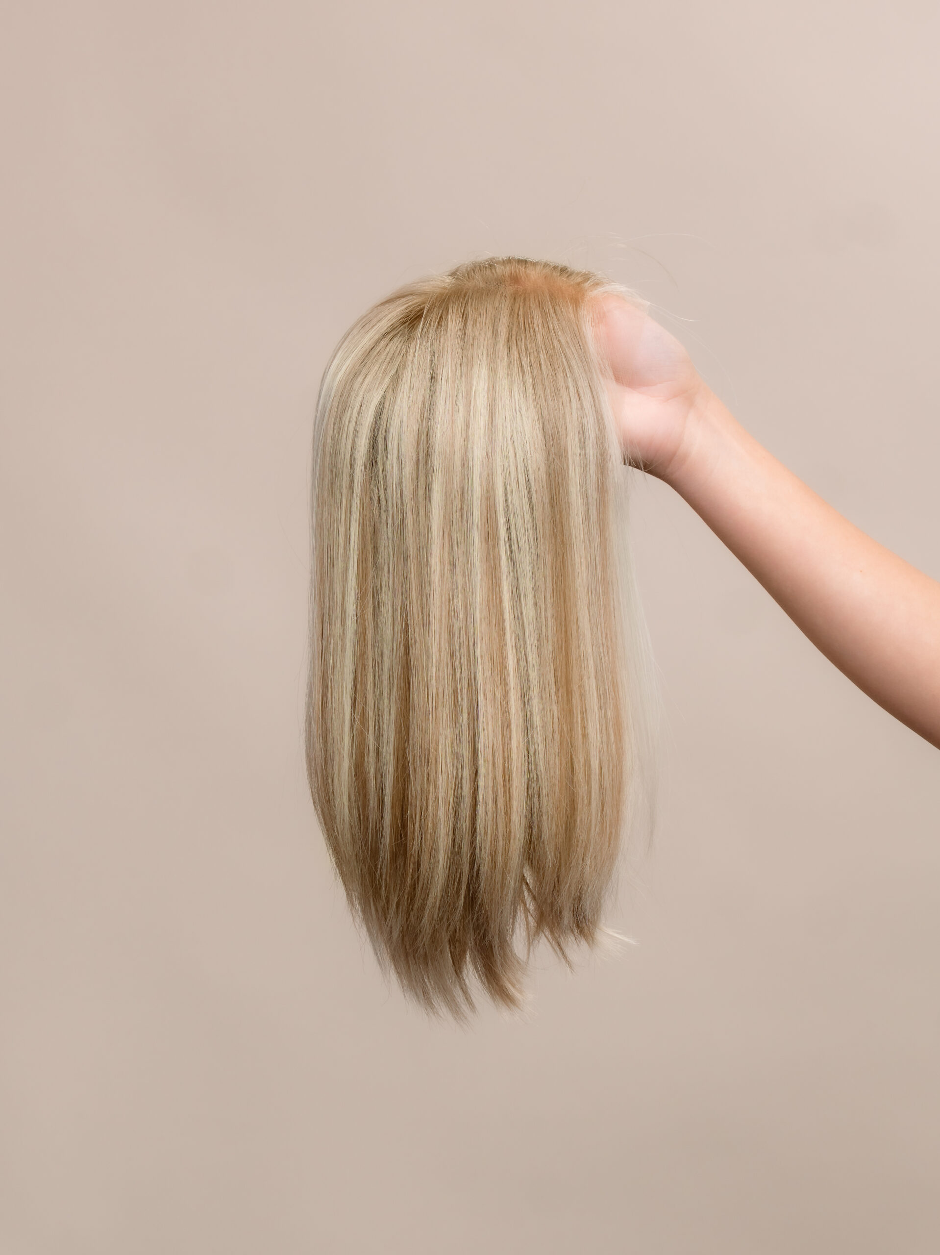 A premium fully hand tied human hair wig offering a featherlight feel and ultra-natural movement. Gisele features a transparent lace top, realistic hairline, and low-density finish in a soft, versatile blonde. Perfect for women who value comfort, lightness, and refined beauty.