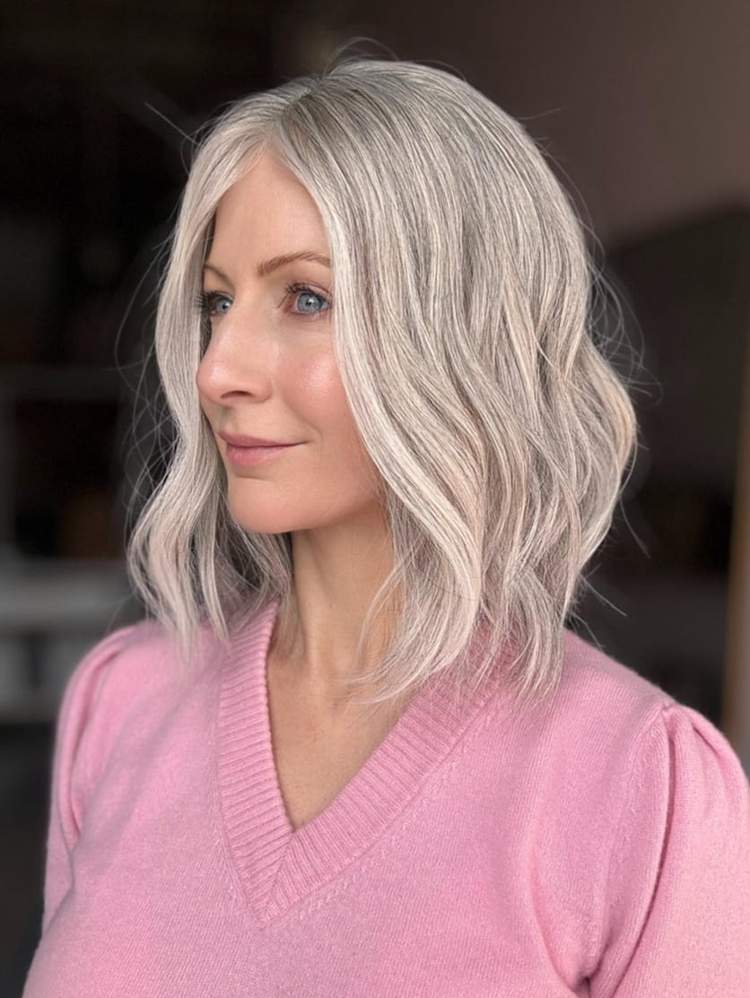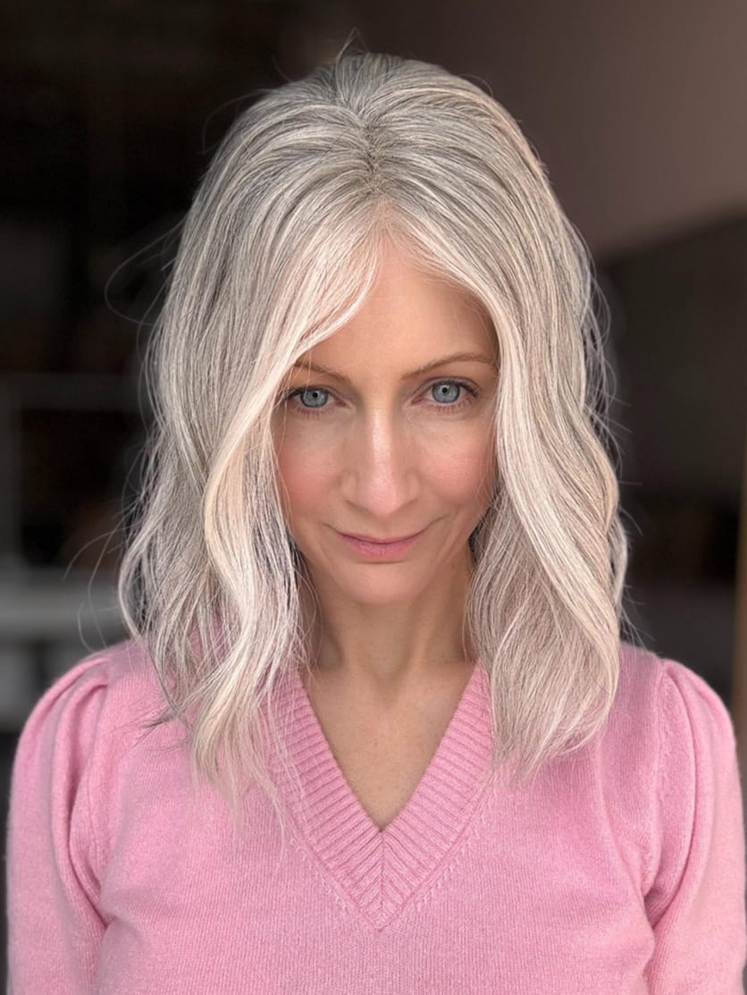 This shade is more silver than grey, offering a cool, luminous tone with a soft, natural shimmer. Delicate pepper babylights add subtle depth and dimension, preventing the colour from looking flat while maintaining a light, airy feel. Slightly brighter and lighter than Misty, this shade creates a sophisticated, modern silver look with a refined, blended finish.