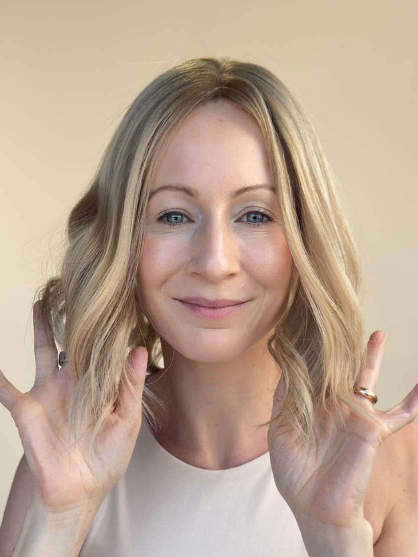 Beige Blonde with Subtle Dimension & a Darker Root Smudge