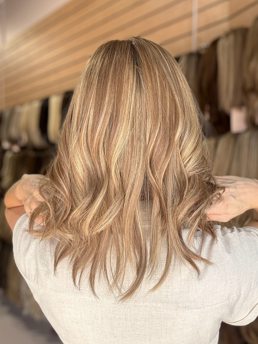 A soft, natural-looking silk top topper that adds effortless volume and length. The silk base mimics a real scalp, offering a seamless, realistic part that sits flat and blends beautifully with your own hair. Made from premium human hair, it can be styled with hot tools for a timeless, radiant blonde finish.