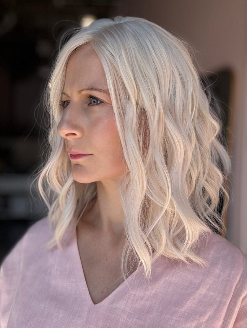 This ultra-light, almost white blonde is the brightest, most platinum shade, completely free of warm or dark undertones. With no colour pigment, it creates a pure, icy effect, resembling fresh snow for a striking, high-impact look. The result is a crisp, luminous blonde that exudes elegance and modern sophistication.