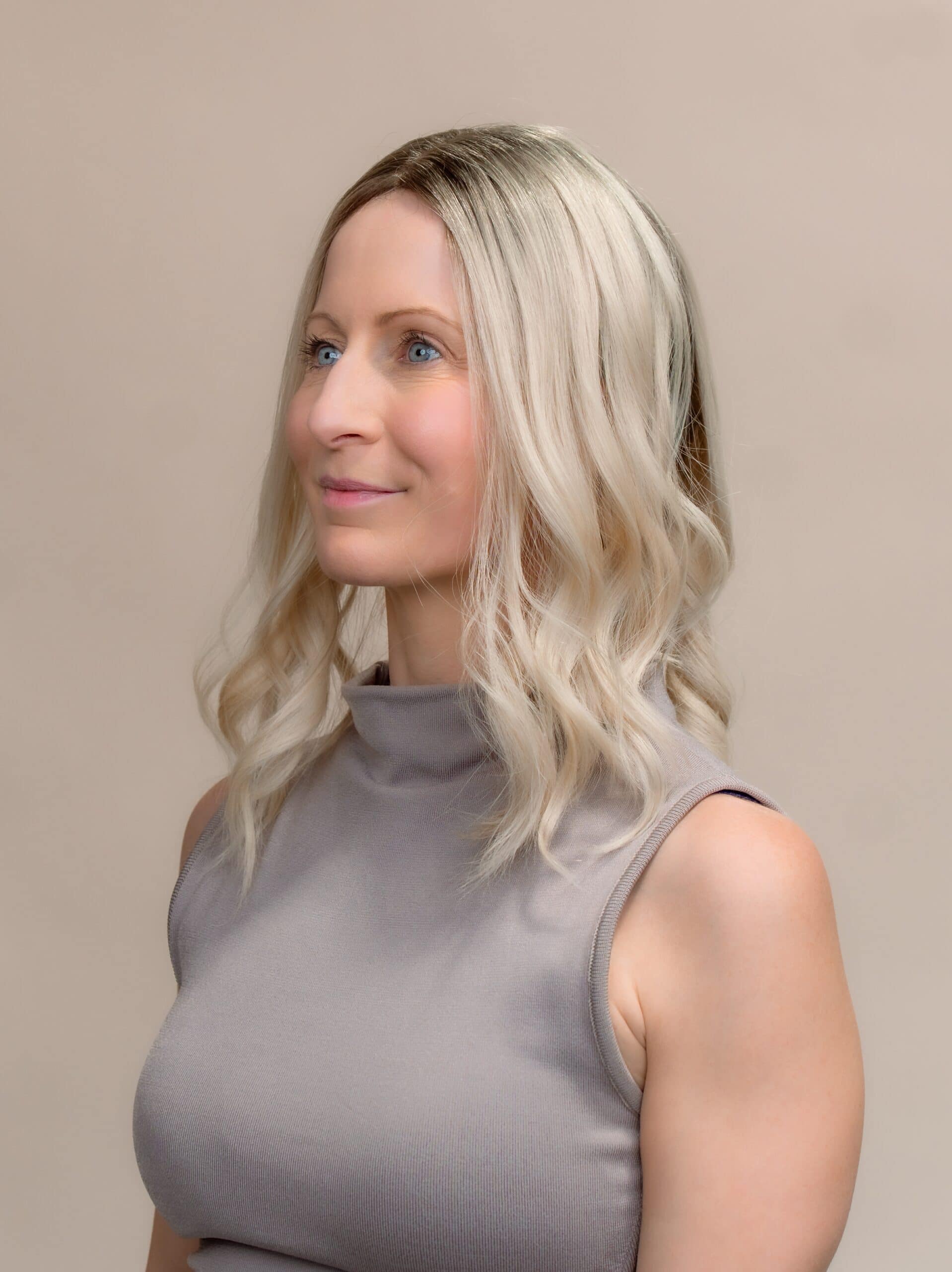 A very light blonde base with cool tones, creating a bright, luminous blonde finish. The cool reflects help counteract warmth, ensuring a clean blonde look. A subtle ash-toned root adds a natural, blended effect, making this shade both effortlessly chic and natural looking.