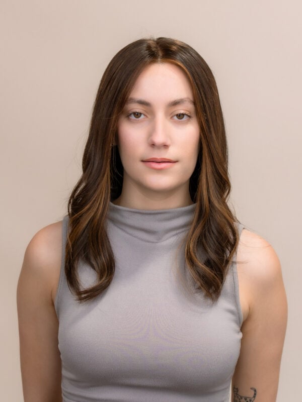 This balanced bronde shade sits between blonde and brunette, offering depth and brightness in perfect harmony. A matte root creates a soft, natural grow-out effect, while subtle peach undertones add warmth and a hint of radiance without overpowering the tone. The defined blonde highlights enhance contrast and dimension, giving the colour a sun-kissed, multi-dimensional look with a modern, sophisticated finish. Perfect for those who want a rich, effortless blend of blonde and brunette with a touch of warmth.