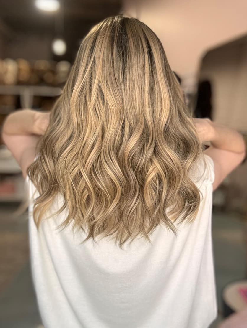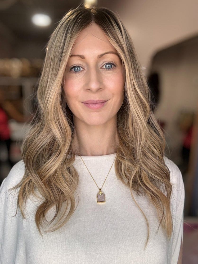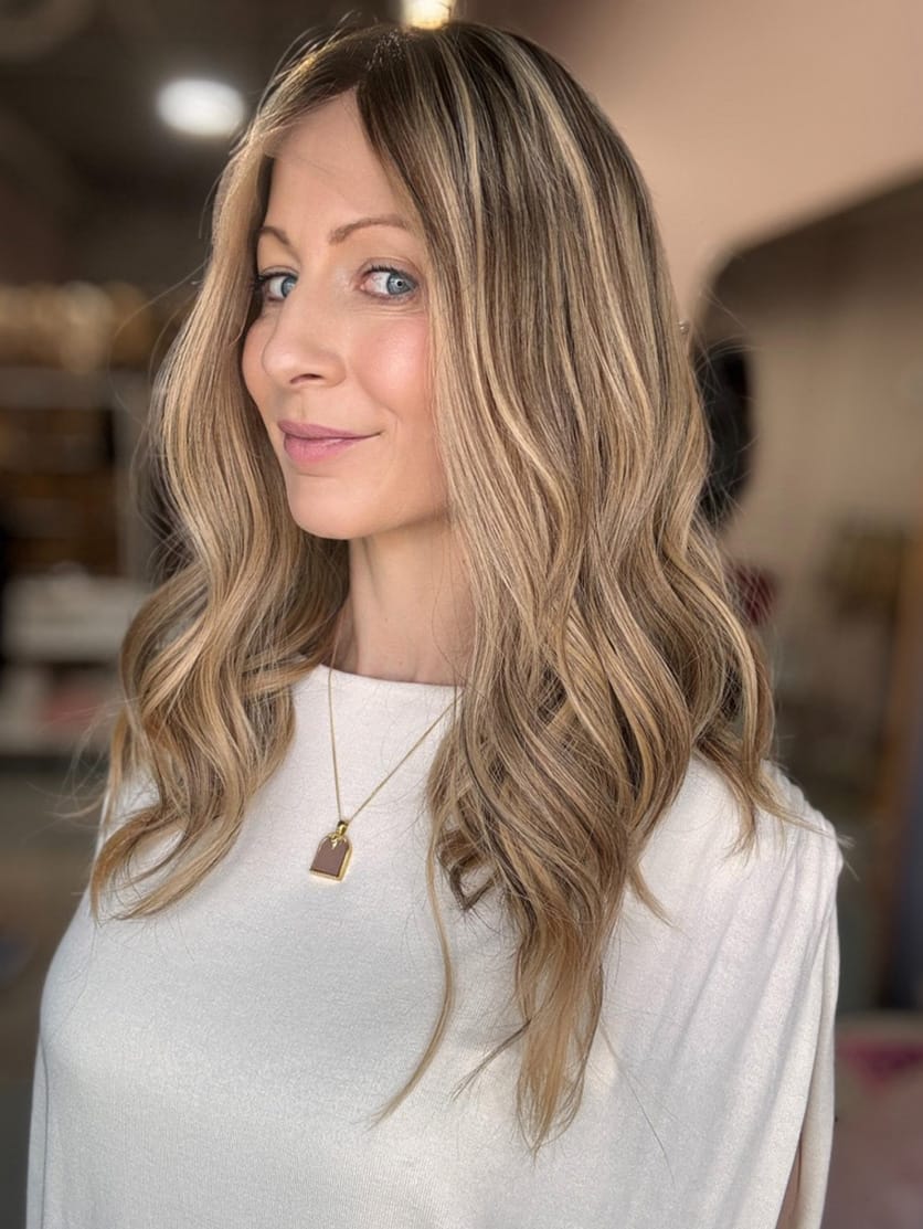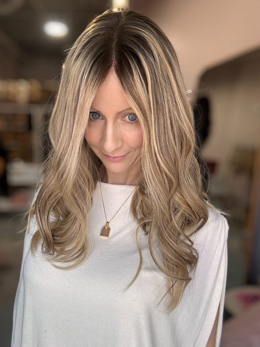 This stunning bronde shade features a rich mocha-toned root and lowlights, adding depth and contrast, while light blonde highlights enhance brightness and dimension. The blend of warm and cool tones creates a high-definition, multi-dimensional effect, making the colour appear natural yet striking. The result is a sophisticated, well-balanced bronde with seamless transitions and enhanced movement. Perfect for those who want a low-maintenance yet high-impact look.