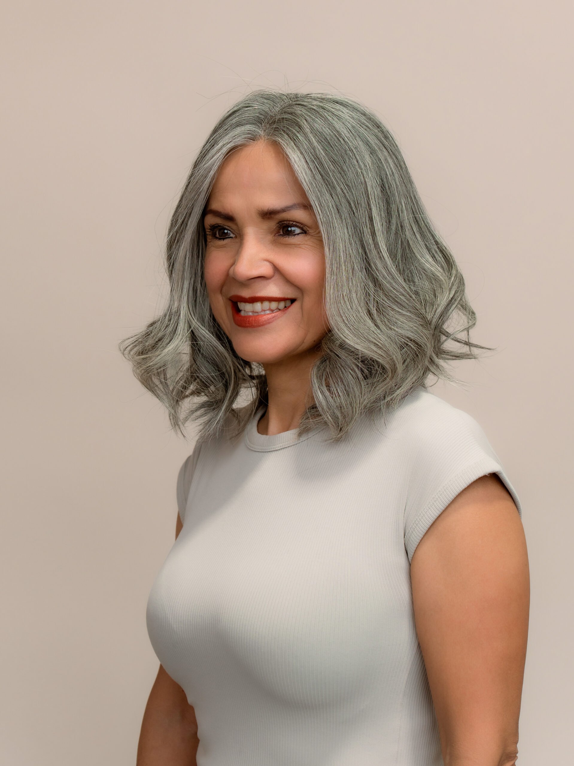 A lightweight lace top wig in a soft silver-grey blend. Made from premium remy human hair, Misty features a natural-looking lace top, realistic hairline, and low-density finish. Designed for women seeking comfort, elegance, and a beautifully subtle grey style.