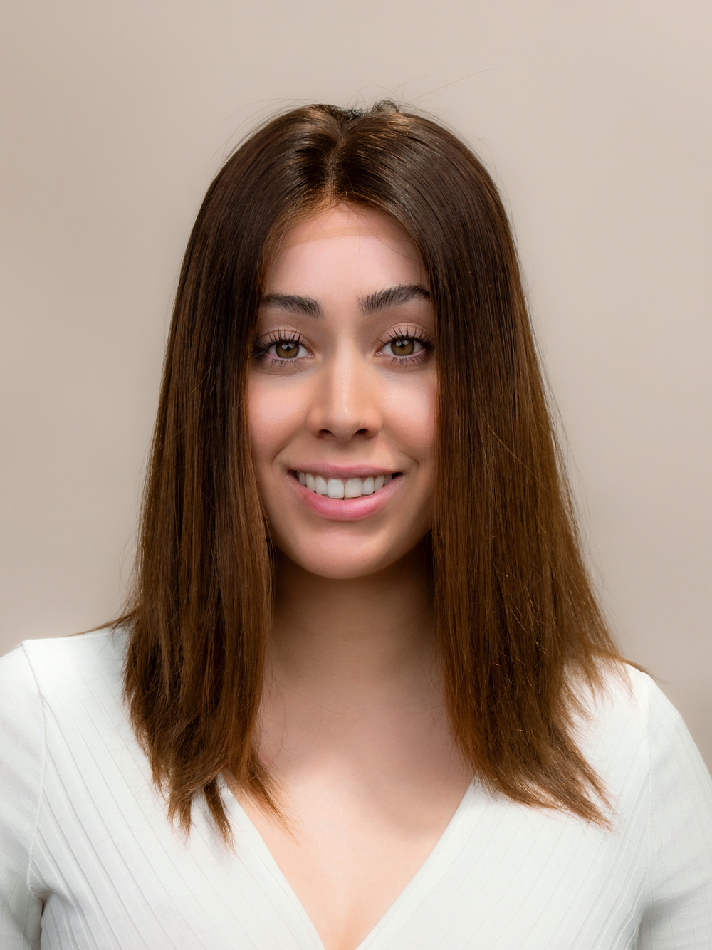 A rich chocolate brunette base softly melting into lighter copper-toned ends for warmth and radiant depth. This medium-density lace top wig offers breathable comfort, natural movement, and a sunlit, dimensional finish.