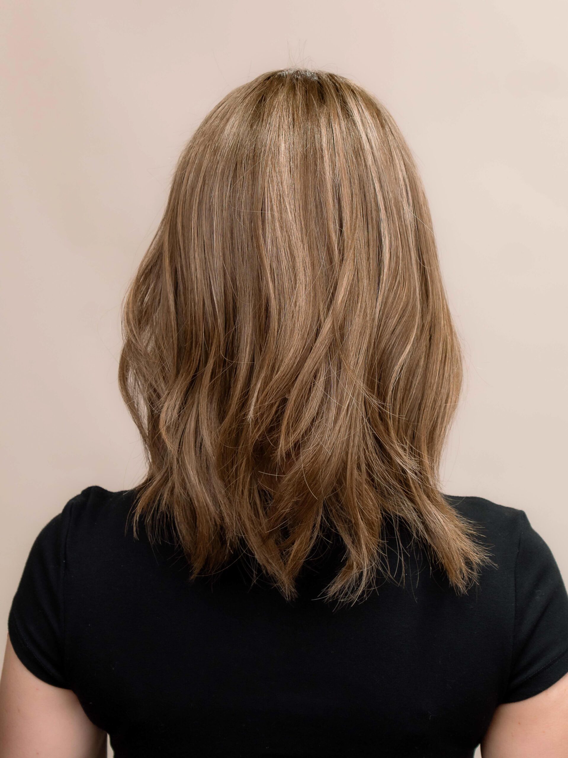 A neutral light brown base is softly brightened with barely-there blonde accents, creating a smooth and natural bronde. The dimension is delicate and blended, making this an ideal choice for those wanting a refined, polished look that feels both timeless and modern.