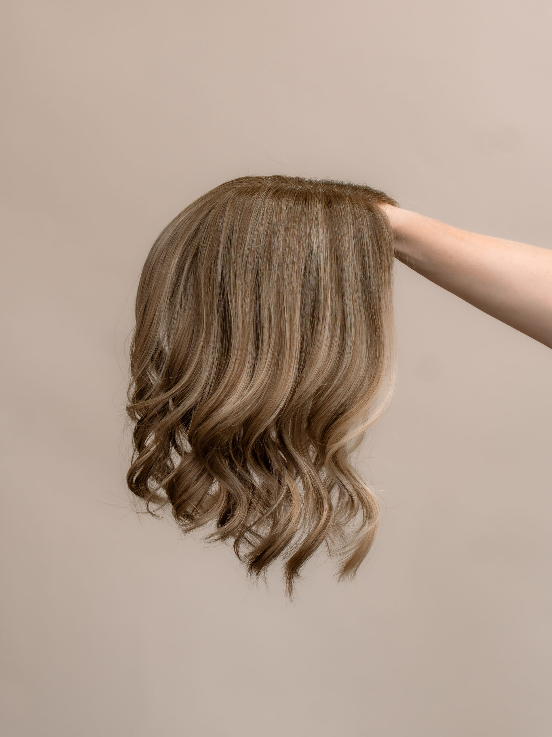 A warm, sun-kissed blend of blonde and brunette tones for a soft, natural look. This lightweight lace topper offers low-density, natural coverage with 100% hand-tied construction for comfortable, breathable wear. It sits flat, blends seamlessly, and can be parted anywhere. Made from premium human hair, it air-dries straight and styles beautifully with hot tools.