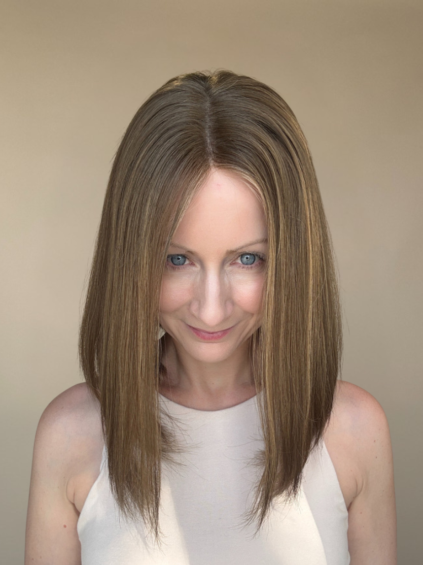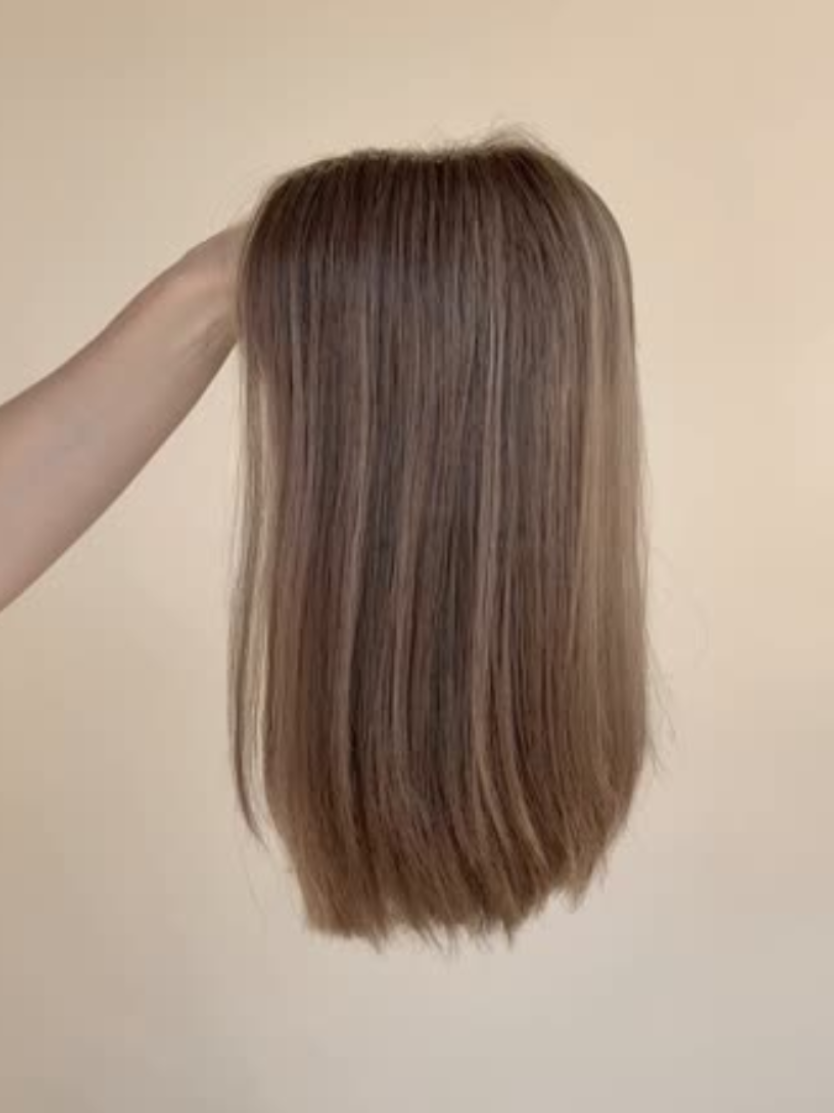 This shade features a muted, matte light brunette base, offering a cooler, more refined take on brown hair. Soft golden highlights are subtly blended to add just a touch of warmth and depth, without overpowering the neutral base. The result is a sophisticated, understated brunette with a modern, effortless feel and a soft, natural-looking dimension.