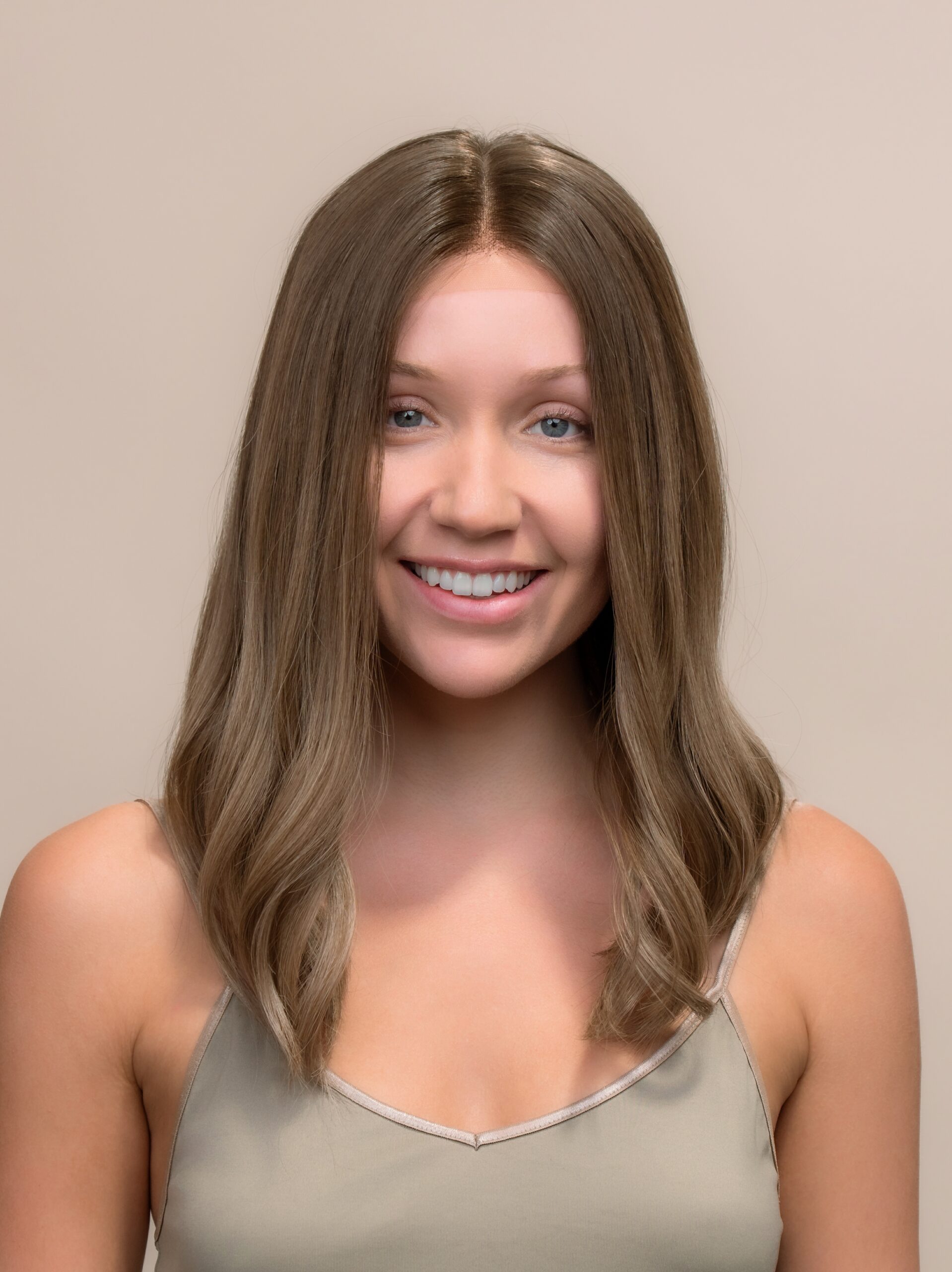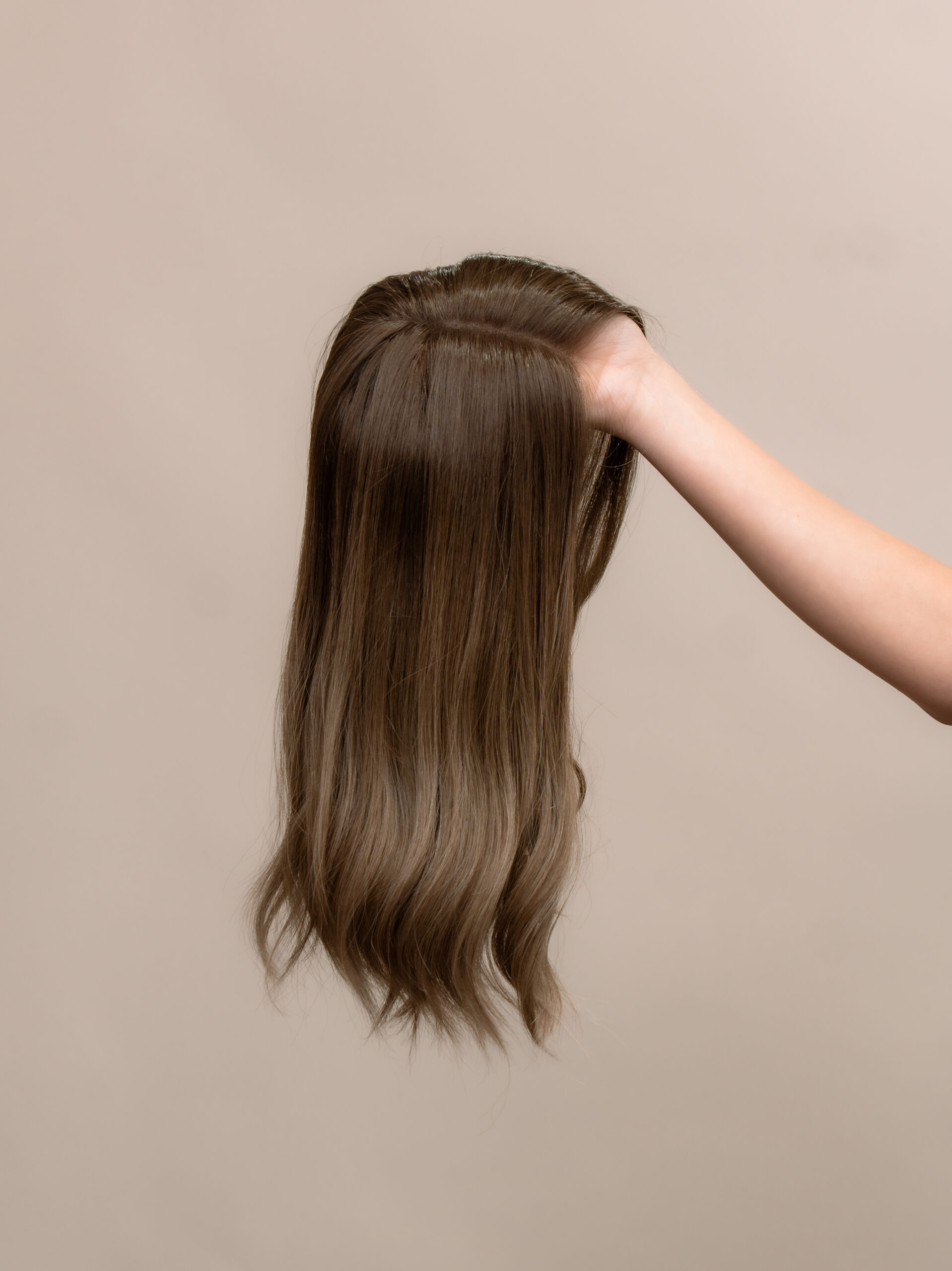 This shade starts with a rich, medium brunette base, seamlessly melting into multi-dimensional mushroom blonde ends. The cool, earthy tones of mushroom blonde create a soft, ashy contrast against the deeper brunette, adding depth and subtle brightness. The result is a natural, blended transition with a modern, sophisticated finish that is low-maintenance yet effortlessly chic.