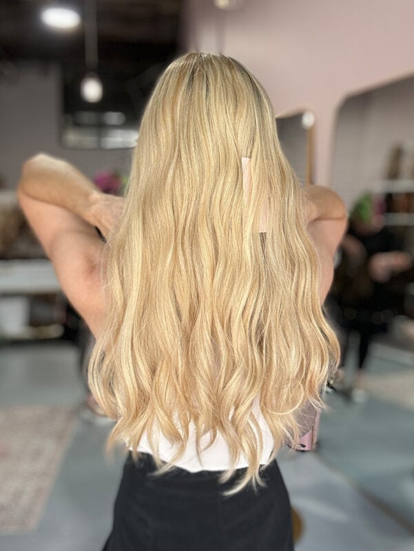 A hair topper is a hair extension that clips on to the top of your own hair, covering the top area of your head. It adds volume, length and also hides hair loss and thin areas.