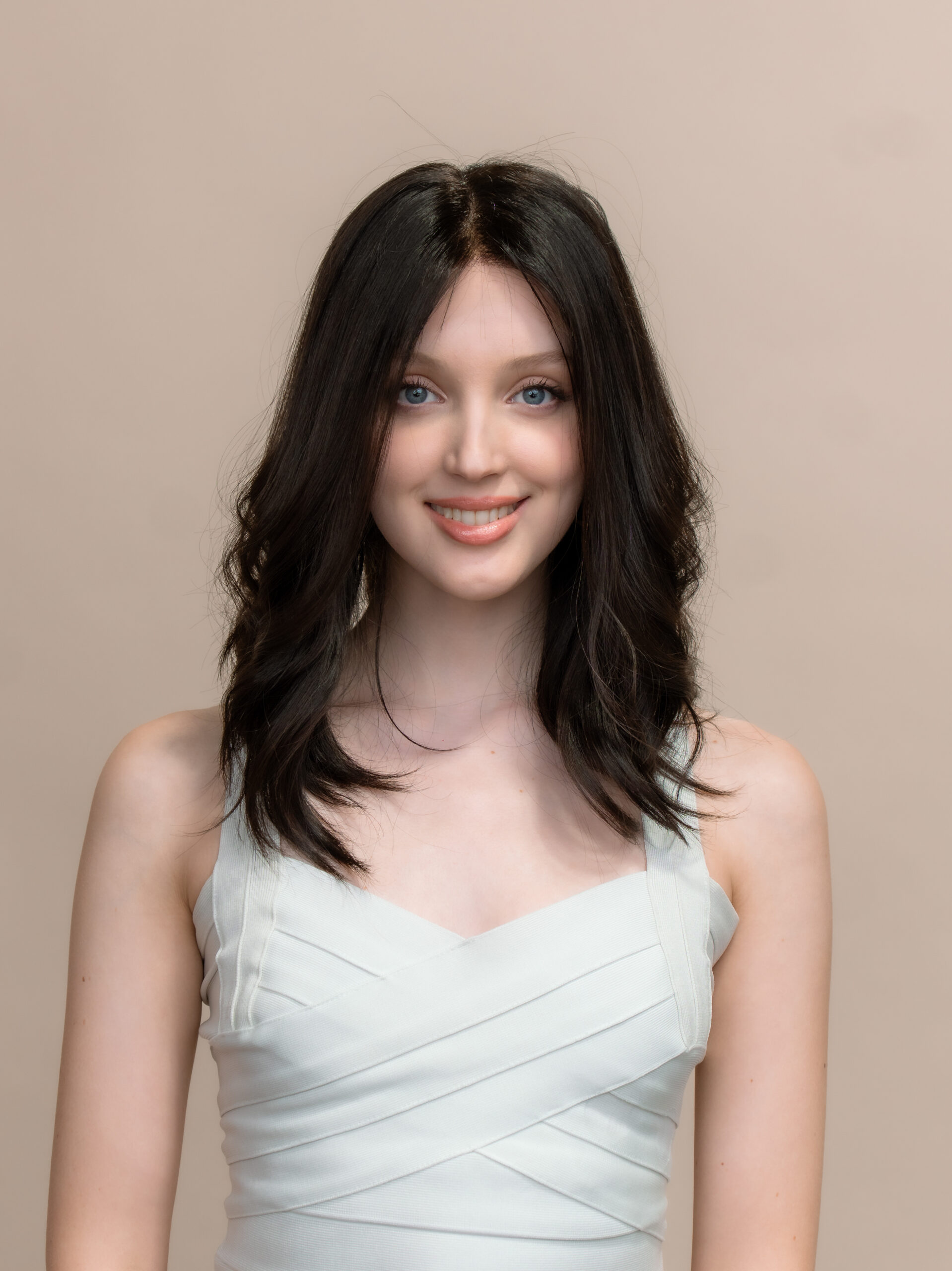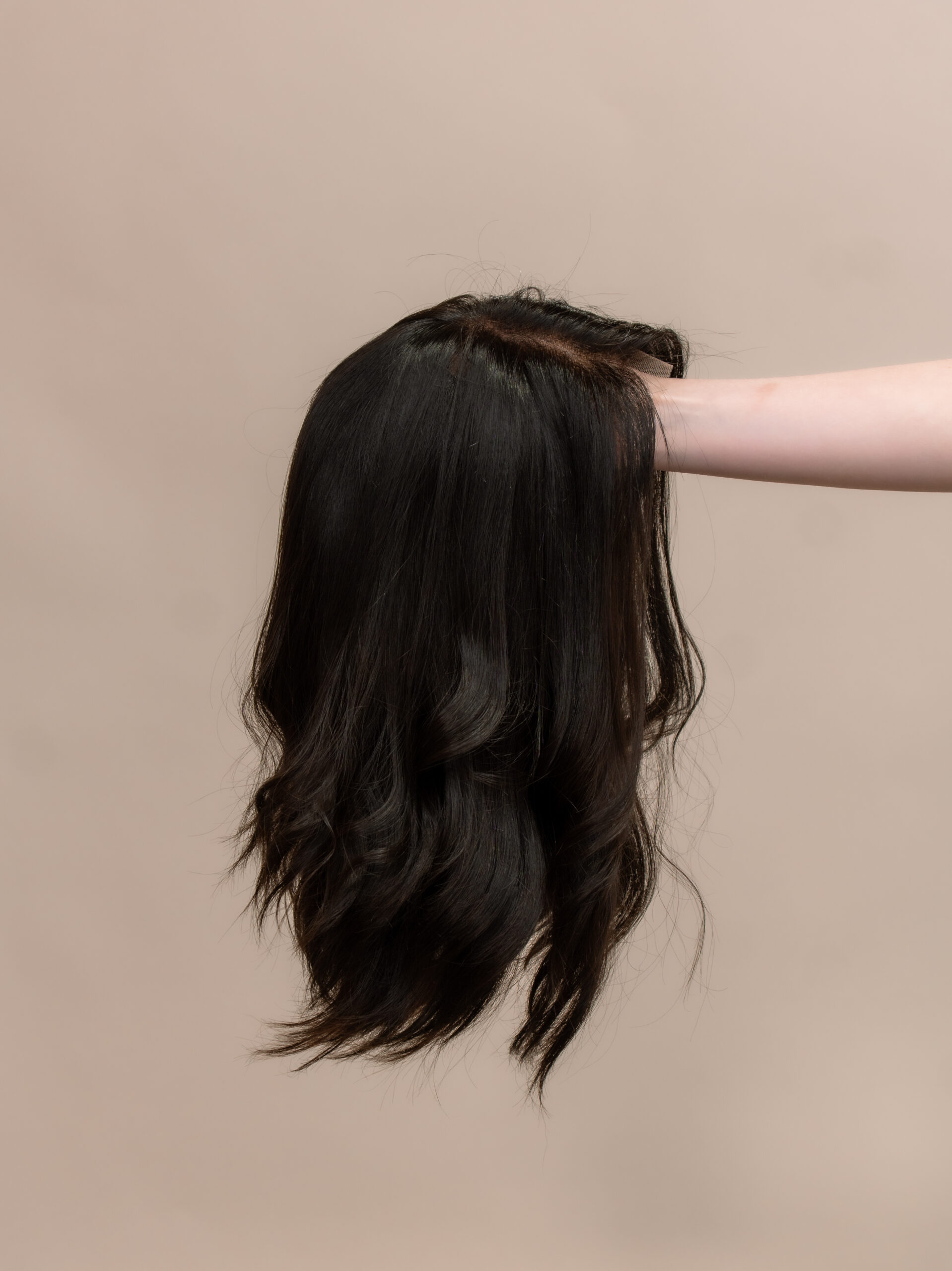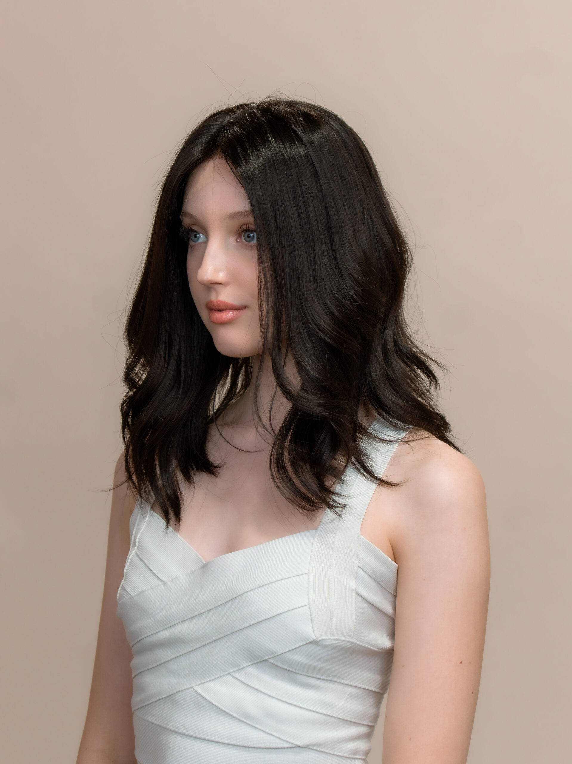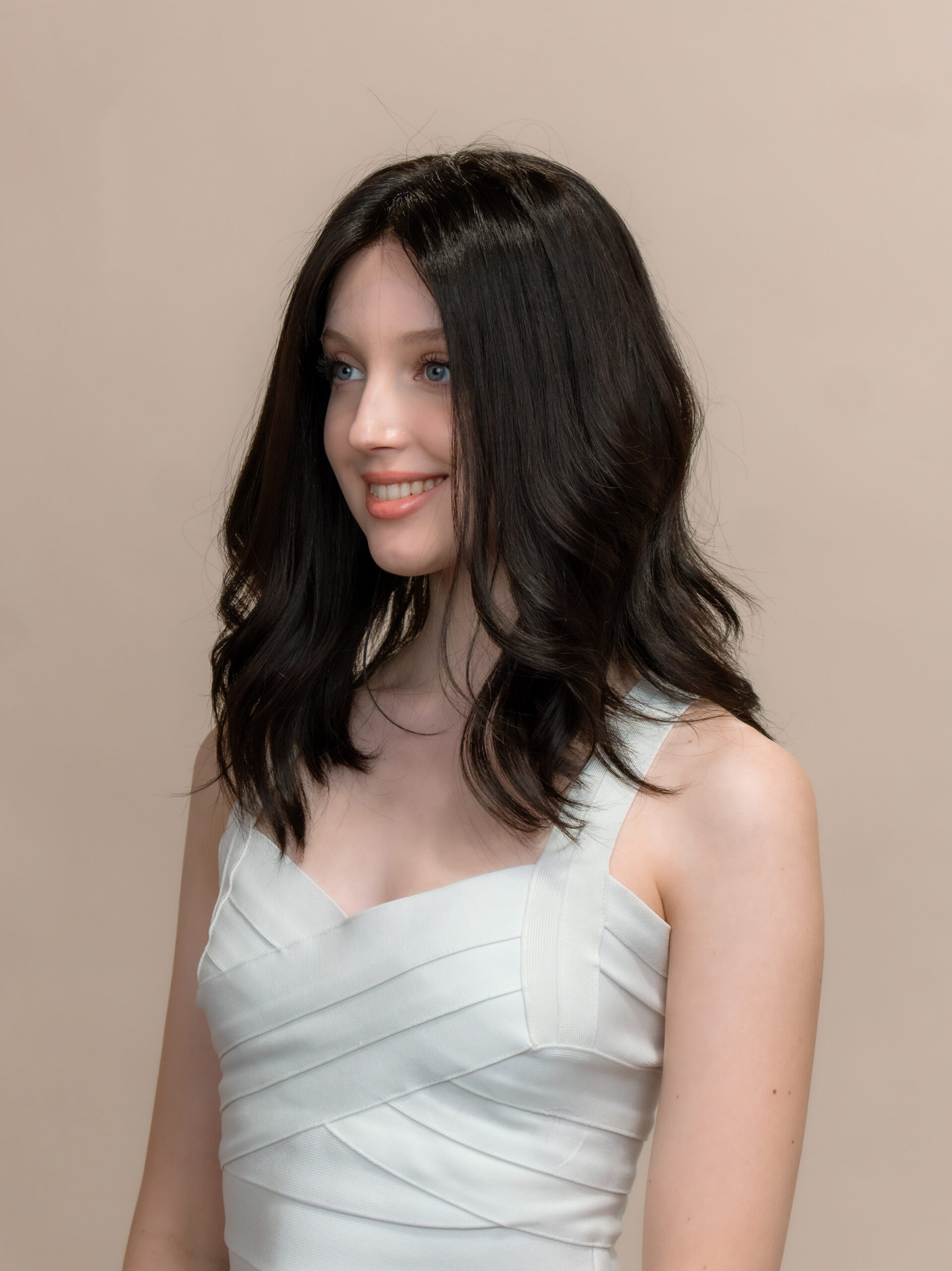 Our deepest, darkest shade — a rich, glossy black that’s soft and natural, never harsh. The lace top wig design offers a realistic hairline, breathable comfort, and versatile styling. Made from virgin remy human hair, it’s silky, durable, and beautifully natural — ready to wear straight or styled with hot tools.